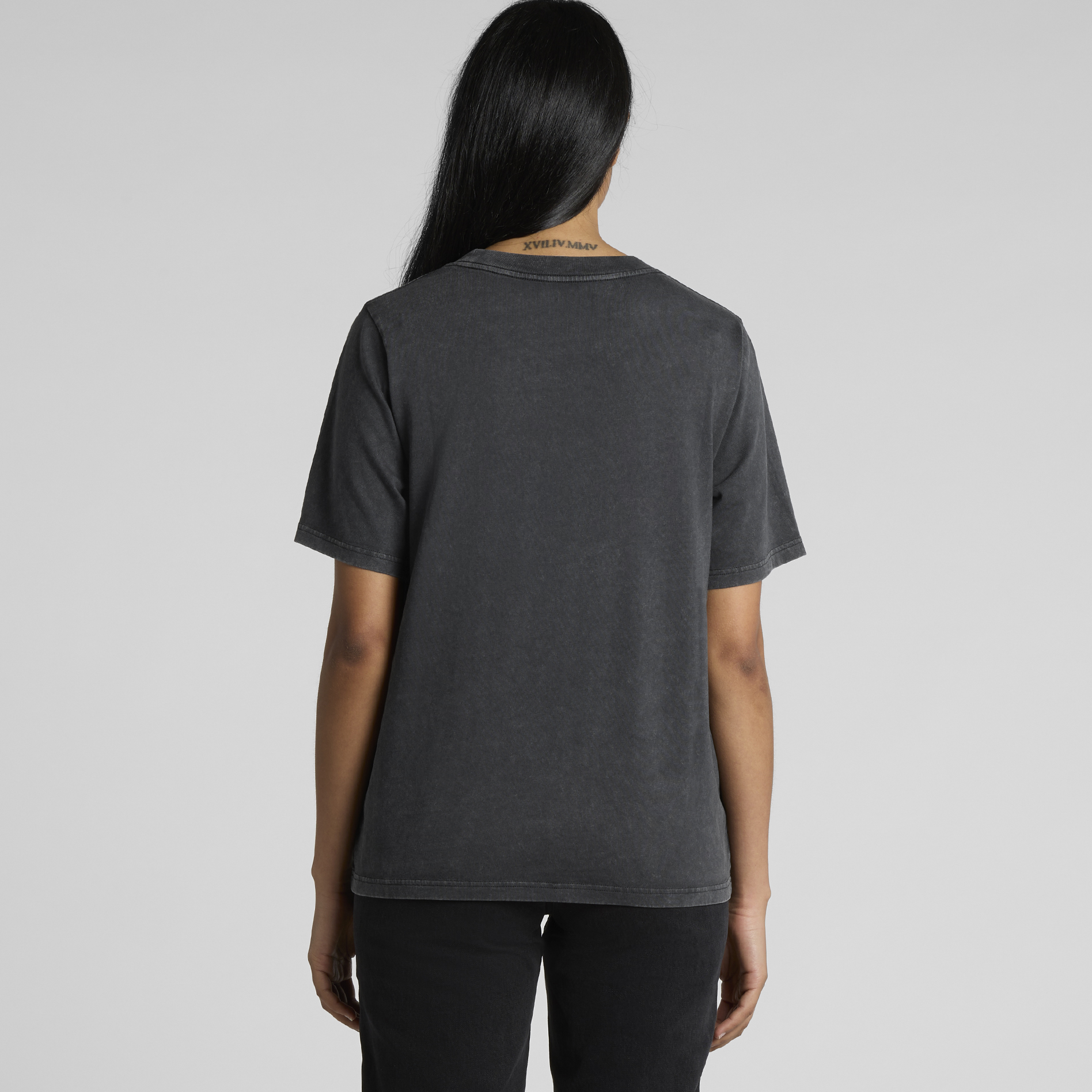 The Women's Stone Wash Heavy Tee has a stone washed finish for that vintage/worn look. Perfect for creating your own custom vintage tshirt at Print Poppa. Crafted from 100% carded cotton for durability and comfort. With a heavy 220 GSM weight, it features a relaxed fit, shoulder to shoulder tape, and twin-stitched wide neck ribbing.